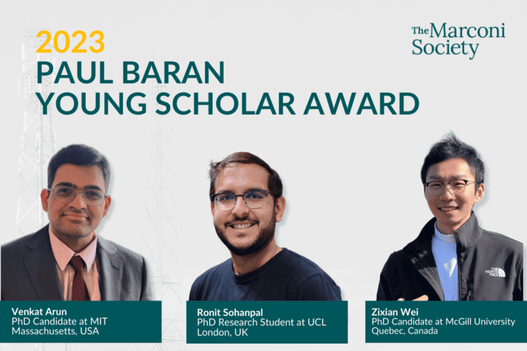 Venkat Arun, Ronit Sohanpal, and Zixian Wei are the 2023 Paul Baran Young Scholars awardees, recognized for their contributions to the fields of advanced communications and information technology, their leadership and commitment to digital equity.